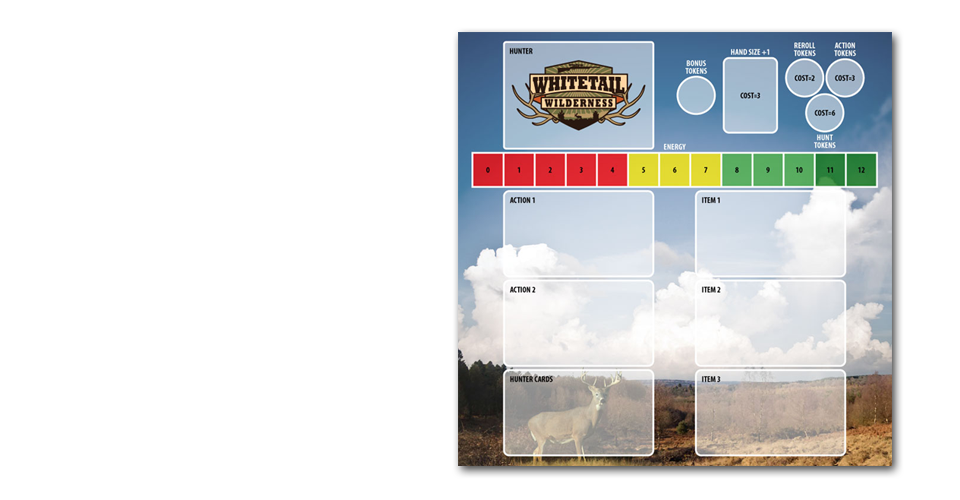 In 2012 Mark 3 was approached by InnoVenture Games with the prospect of bringing their board game Whitetail Wilderness to life. In early 2013 the game was released through TheGameCrafter.com. The logo and all game pieces were designed by Mark 3. All illustrations were created beautifully by the incredibly talented digital painter Kip Ayers. For more design examples, see the sales page here.